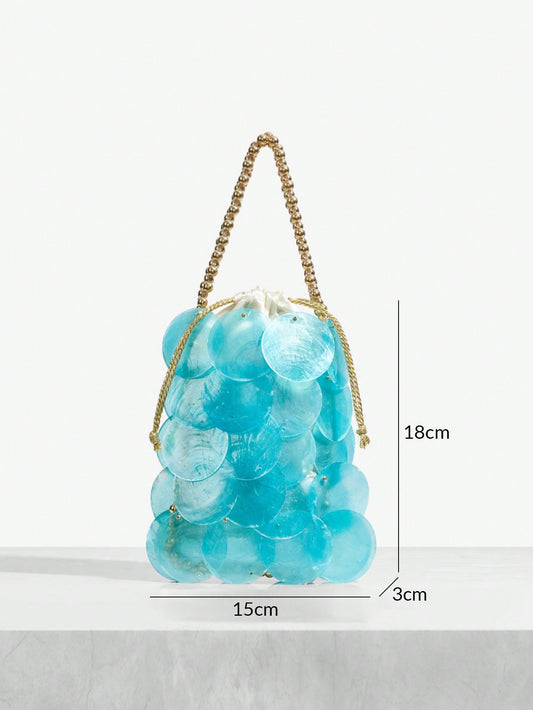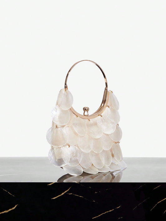Minimalist Seashell Handmade Woven Gold Beaded Bag