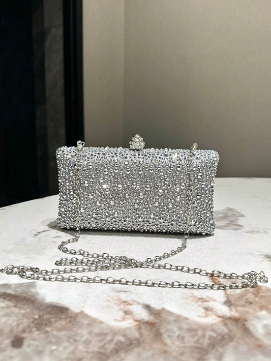 Rhinestone Shiny Silver Clutch Bag