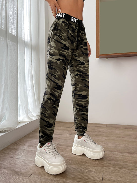 Camo Print Knot Front Letter Tape Sweatpants