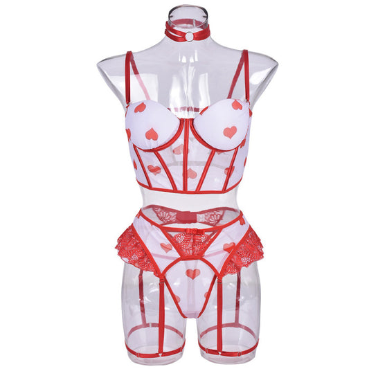 Contrast Lace Underwire Garter Bustier Set With Leg Ring
