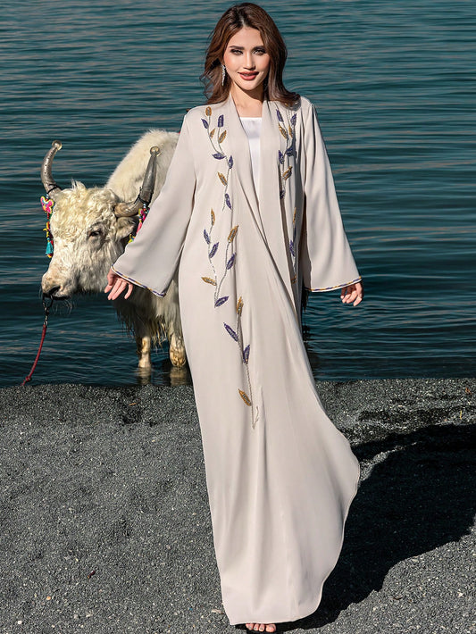 Handmade Embroidered Plant Pattern Long Sleeve Arabic Abaya