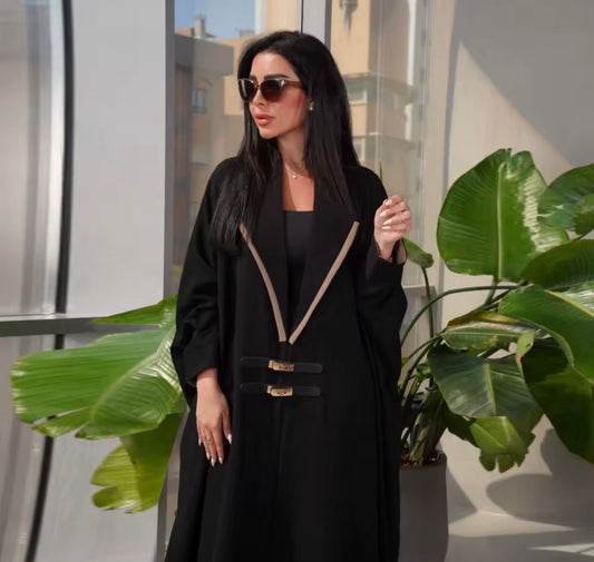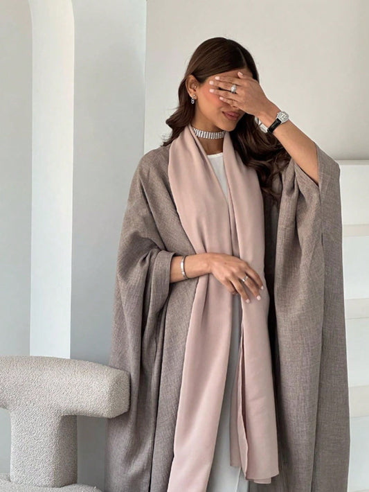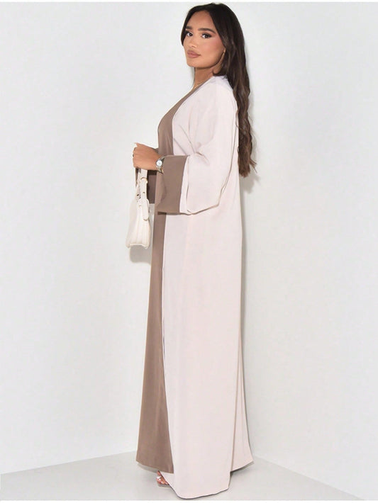 Soft Color Block Dubai Abaya Kimono Cream with Khaki