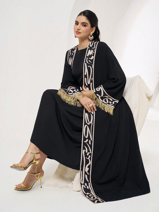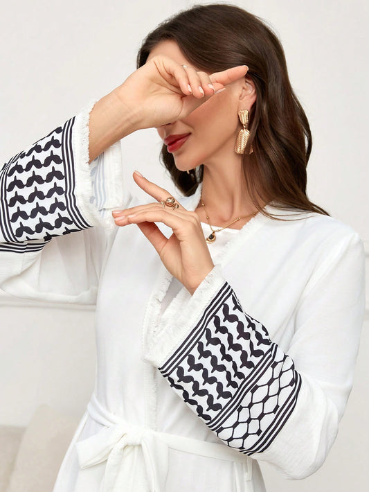 Folk Pattern Printed Women's Arabic Abaya Kimono only