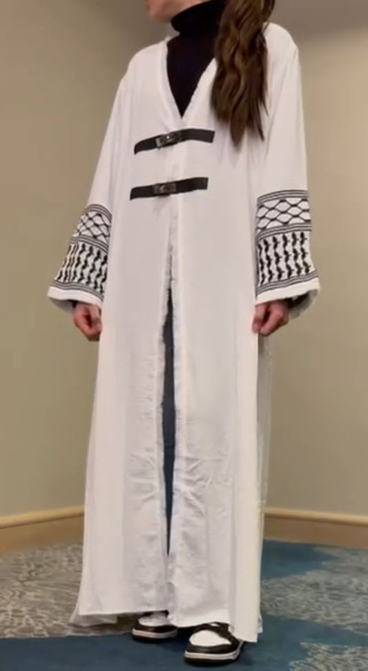Her-Spo Kuffiya Embroidered Pocket Kimono Abaya