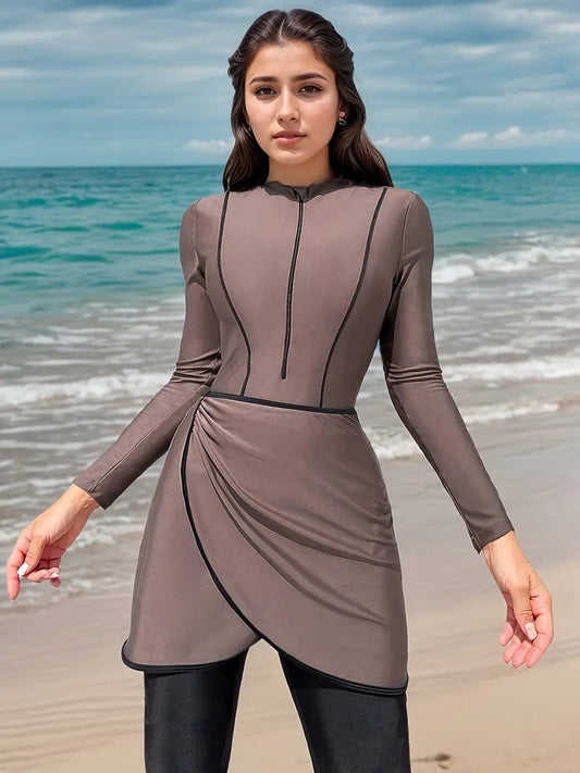 3pc Short Sleeve Top, Pants, Laser Cut Maxi Skirt Swimwear Set