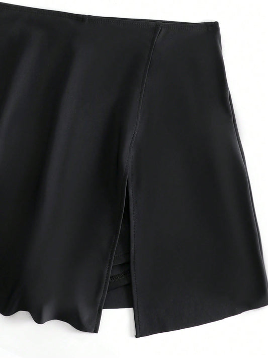 Ombre Push Up Bikini Swimwear With Beach Skirt