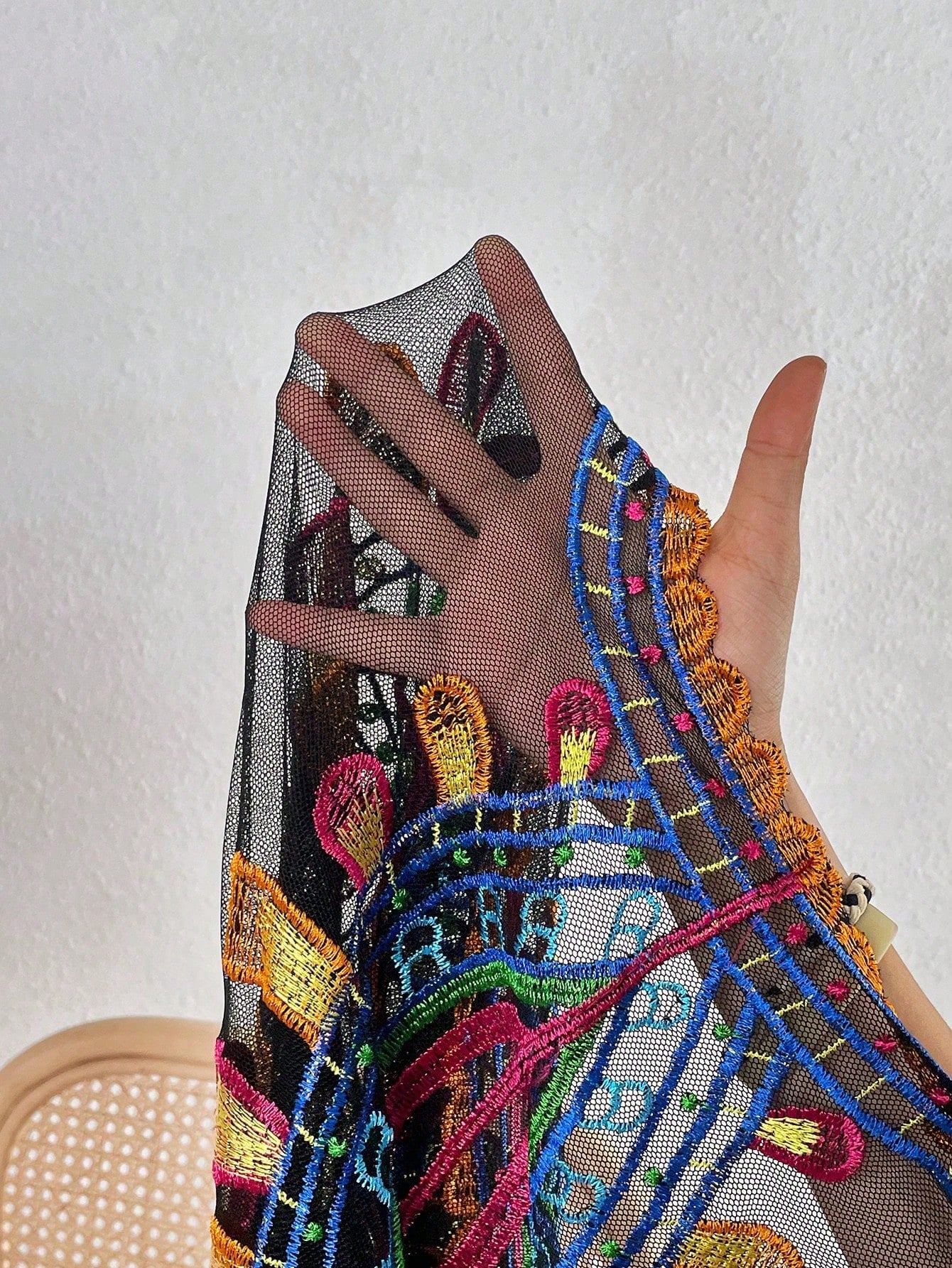 Embroidered Mesh See Through Kimono Swim Cover-Up